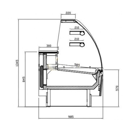Vitrina para pastelería con cristal curvo de 1 mts de gama económica. La vitrina de pastelería lider de ventas por su relación calidad precio.