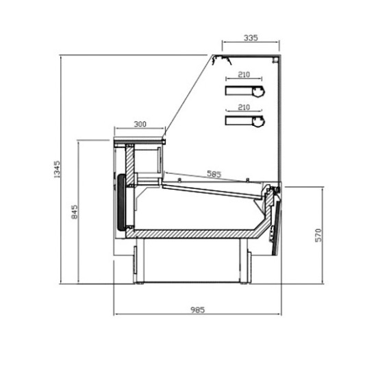 Vitrina para pastelería de 1500 con cristal curvo de gama económica. Una gran elección si necesita una vitrina bonita, económica y con un resultado impecable. Fabricación Nacional. Cristal RECTO