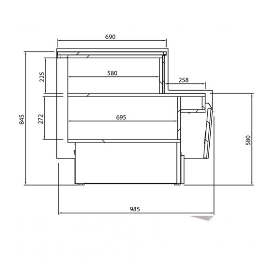 Mesa mostrador y caja con sobre encimera de inoxidable. Especial para combinar con vitrinas pasteleras de la serie Glacé de Infrico.
