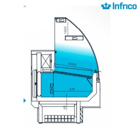 Excelente vitrina refrigerada económica, pequeña y robusta con la calidad de fabricación Infrico. Vitrina refrigerada con cristal curvo reforzado. Ideal para la exposición y conservación de productos en charcuterías, carnicería, bebidas, pasteles, etc.