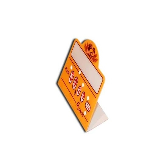 Cartel portaprecios para panadería y pastelerías con pincho. Cartel 8,5 x 6 cm. Altura total con pincho: 11 cm. Con números rodantes y con texto "Kilo". Con zona de 6,8 x 2 cm para poner texto con rotulador tipo vileda. Material Apto para uso alimentario.