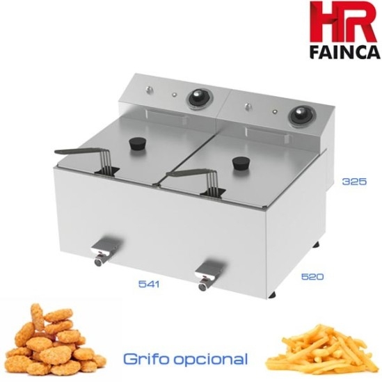 Freidora profesional Valentine TF-77 de 5,5 a 7 litros fabricada totalmente en acero inoxidable (Dispone de dos cubas) con grifo de vaciado. Cuenta con una potencia total de 3600 W en cada cabezal (16 kg de producción por hora) en su versión monofásica y 4200 W en cada cabezal (18 kg de producción por hora) en su versión trifásica. Cabezal y cuba desmontables para su fácil limpieza.