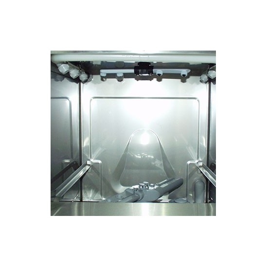 Lavavasos Industrial con cesta de 350x350mm. Construcción robusta con doble pared lateral y en puerta. Cuba totalmente soldada con un filtro protector de la bomba de lavado. Lavavasos ideal para bares o restaurantes que tengan espacios reducidos. Lavavasos de Gran calidad al mejor precio.