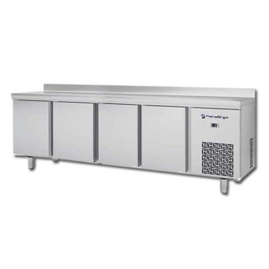 Compre nuestras mesas de congelación Docriluc, con ellas dispondrá de la mesa que están buscando a un precio excepcional, mesa construida en acero inoxidable 304, puertas con sistema de cierre automático, provistas además de burlete magnético. La encimera o sobre dispone de un peto de 100 mm de alto para evitar que caigan alimentos u otros complementos por la parte trasera. Dispone de patas regulables en altura ajustables de 125 a 200 mm. De un toque diferente a su negocio con una mesa fría apta para cualquier cocina industrial. La unidad de frío es de alta garantía de calidad con sistema ventilado y extraible para su mantenimiento. El evaporador es de tiro forzado por ventilador tangencial. La evaporación del descarche es automático. Aislamiento de poliuretano intectado de gran aislamiento. Control de temperatura digital con descarches programables incluidos, eficiente en la gestión del consumo energético Temperatura de trabajo indicada ambiente de 35ºC.